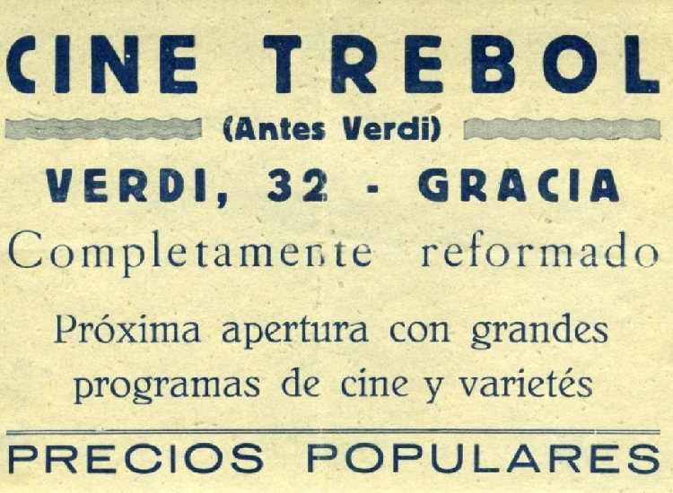 Per parlar dels orígens dels Verdi, l’historiador es remunta al novembre de 1889, quan el Foment Protector de la Vila de Gràcia va demanar el permís per construir un cobert a la finca del carrer Ample 32, avui carrer Verdi. Al jardí de la finca s’hi va aixecar un petit teatre batejat com a Moratín. “L’any 1911 ja hi ha projeccions de cine, tal com recull una revista, i als anys 30 l’espai canvia de nom a Ateneo, després Trébol i finalment pren la nomenclatura definitiva: Verdi”, explica Contel.